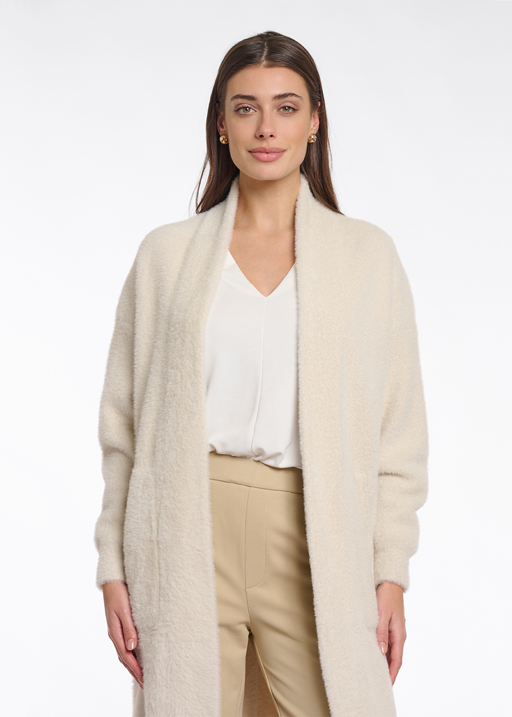 Designed in the Netherlands, Rino & Pelle brings their signature balance of luxury and wearability to this timeless cardigan. The Arline cardigan is crafted in a soft birch-toned knit with a relaxed open front, dropped shoulders, and ribbed cuffs for a refined yet cozy finish. Effortlessly versatile, it’s the perfect layering piece to transition from casual days to polished evenings.