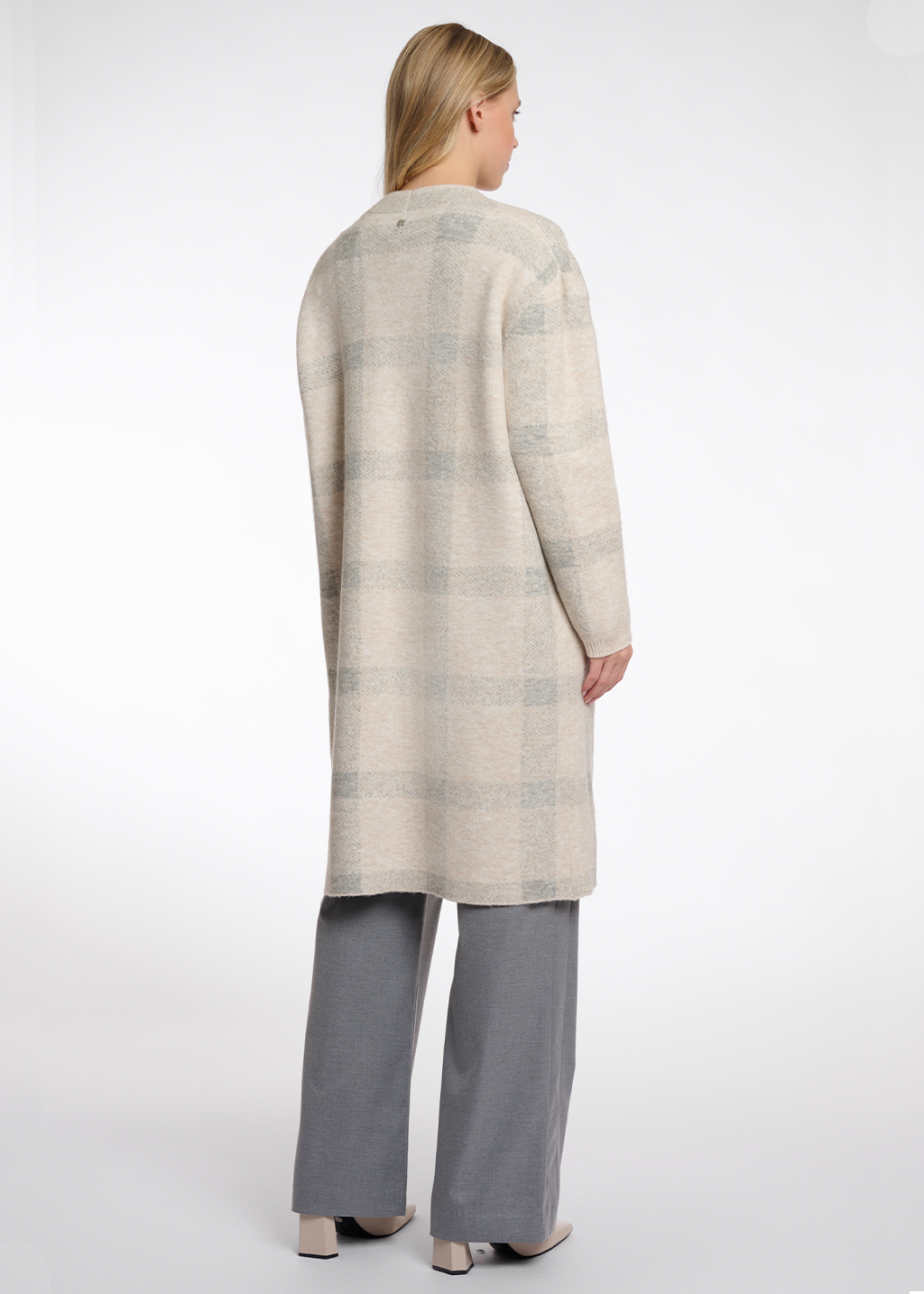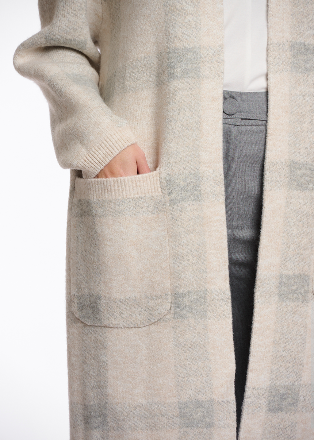 Introducing the Giulia Long Check Cardigan, a statement layer that blends timeless design with everyday ease. Featuring an elegant longline silhouette, soft open front, and practical patch pockets, this cardigan is finished in a subtle check pattern that adds depth and sophistication. Cozy yet polished, it’s the perfect piece to carry you effortlessly from workdays to weekends.