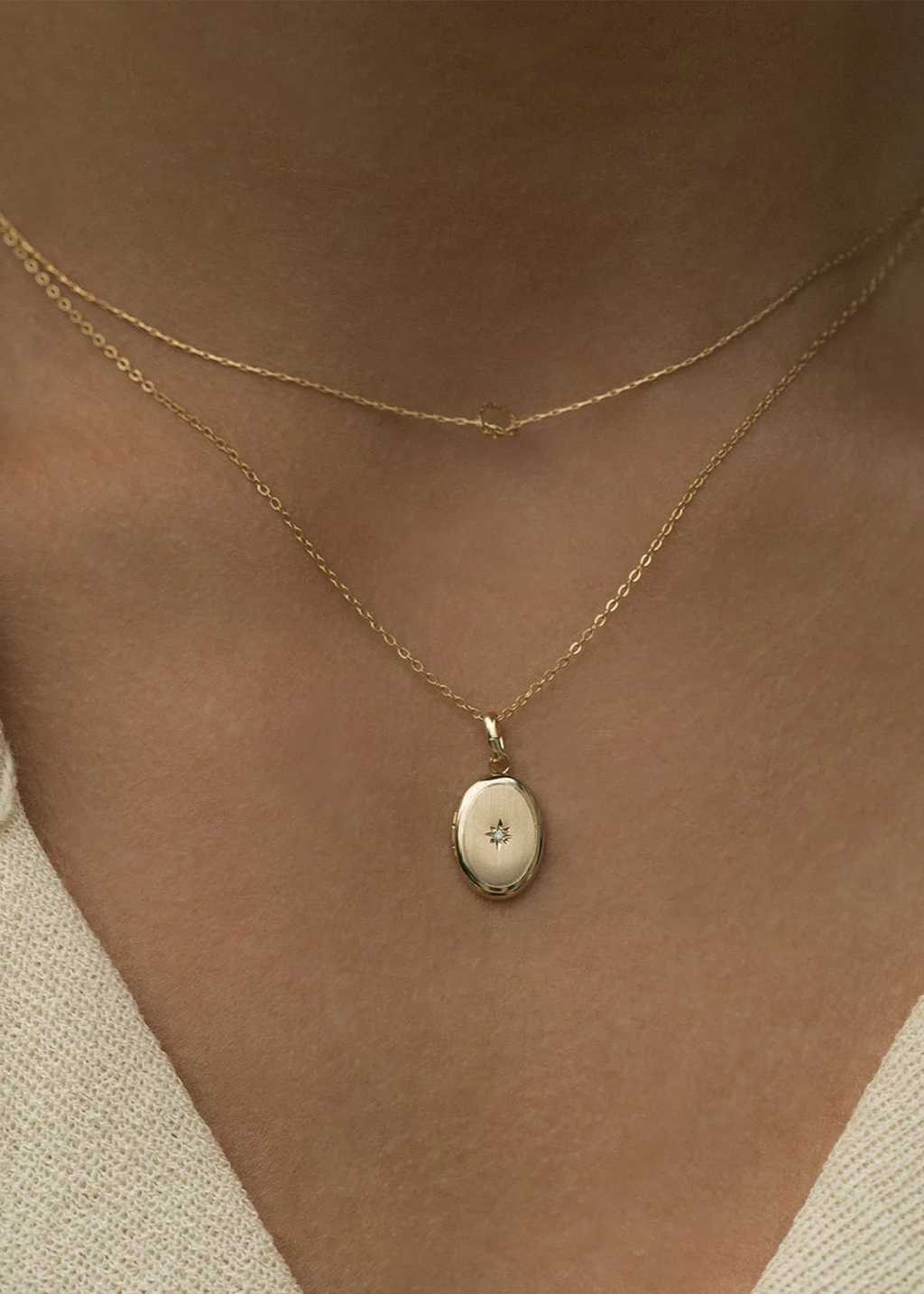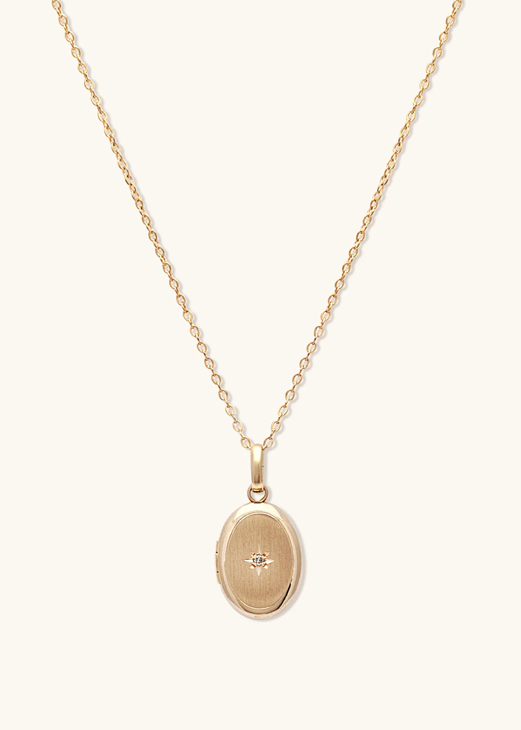 A future heirloom — this antique-inspired petite locket is made to be passed down through generations and keeps your loved ones close to your heart. Features a 14K gold-filled satin center that houses a genuine diamond and a polished border.