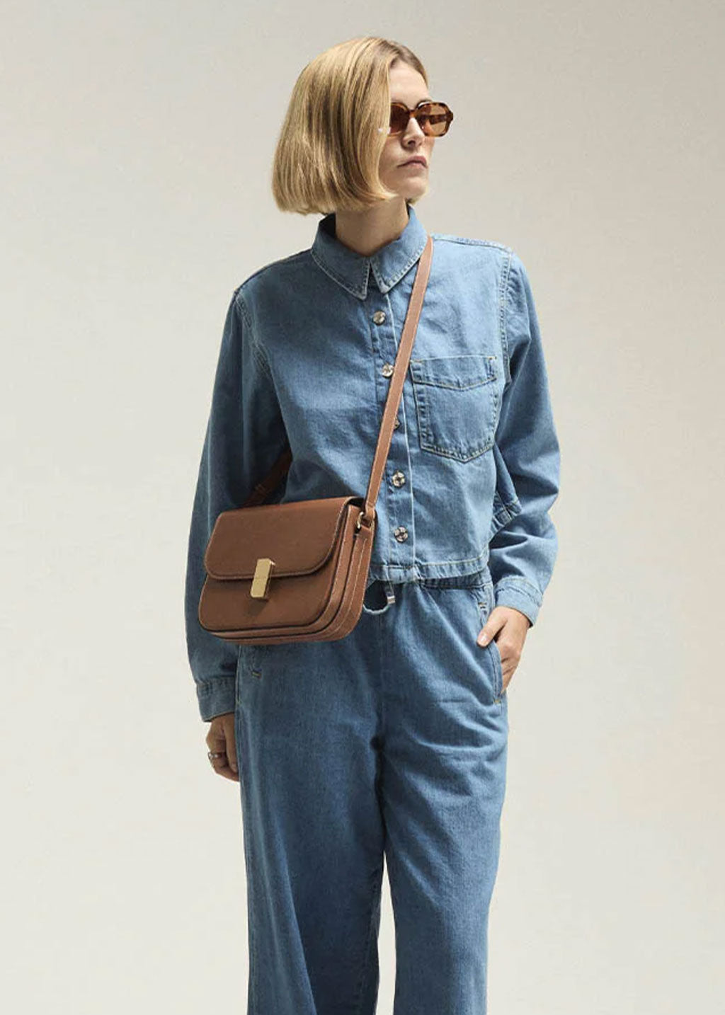 Compact and versatile, the Alice leather bag accompanies every moment of your day. This leather shoulder bag seduces with its rectangular silhouette and clean lines, designed to adapt to all your outfits. Worn on the shoulder or across the body, it offers a custom fit thanks to a leather handle that can be adjusted with collar buttons, combining comfort and practicality. Its signature clasp, a nod to the identity of nat & nin, brings a contemporary and sophisticated touch.