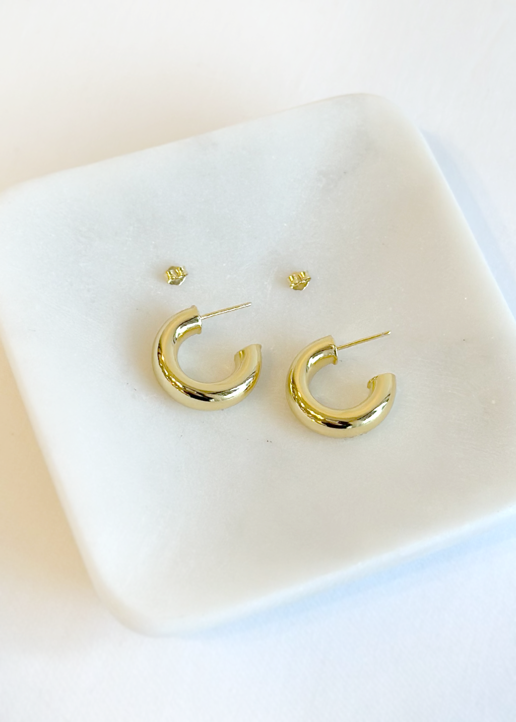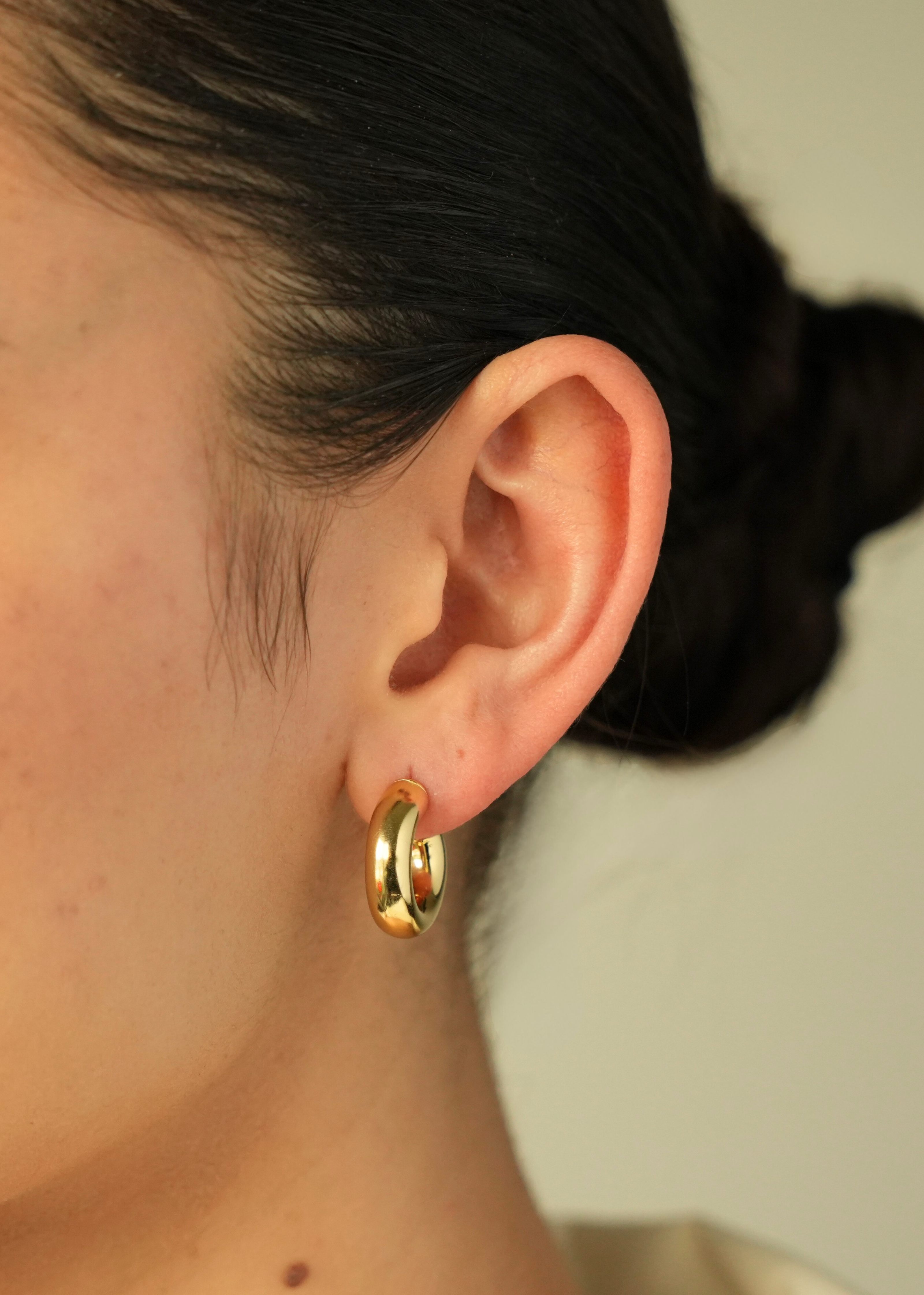 Upgrade your earring game with the Midnight Hoop. This chunky gold hoop adds some bold-ness to your everyday look. Elevate your style and make a statement with these versatile and stylish earrings.