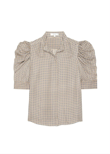 At once modern and romantic, this silk blouse has become a FRAME favourite. Featuring a high neckline and boldly puffed sleeves with ruched detailing, it easily complements any of your denim.