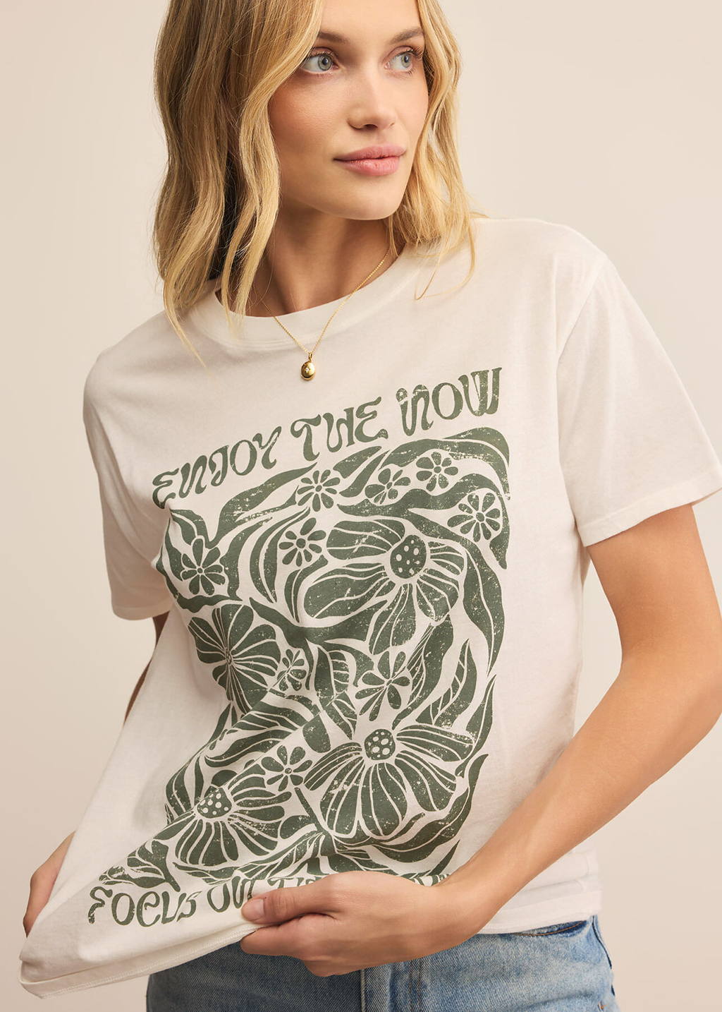Made from soft cotton jersey, this relaxed-fit tee is all about feel-good style and comfort. A centre front tropical flower graphic reads enjoy the now, focus on the good, adding a sunny reminder to your everyday look. It’s the kind of top you’ll find yourself reaching for on repeat.