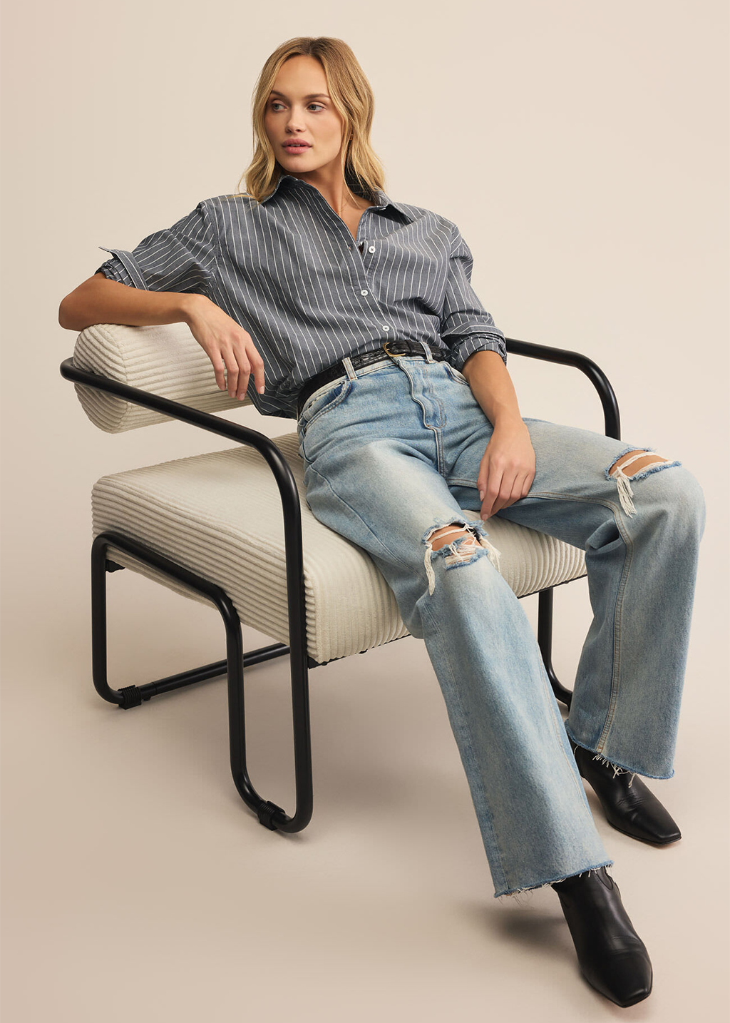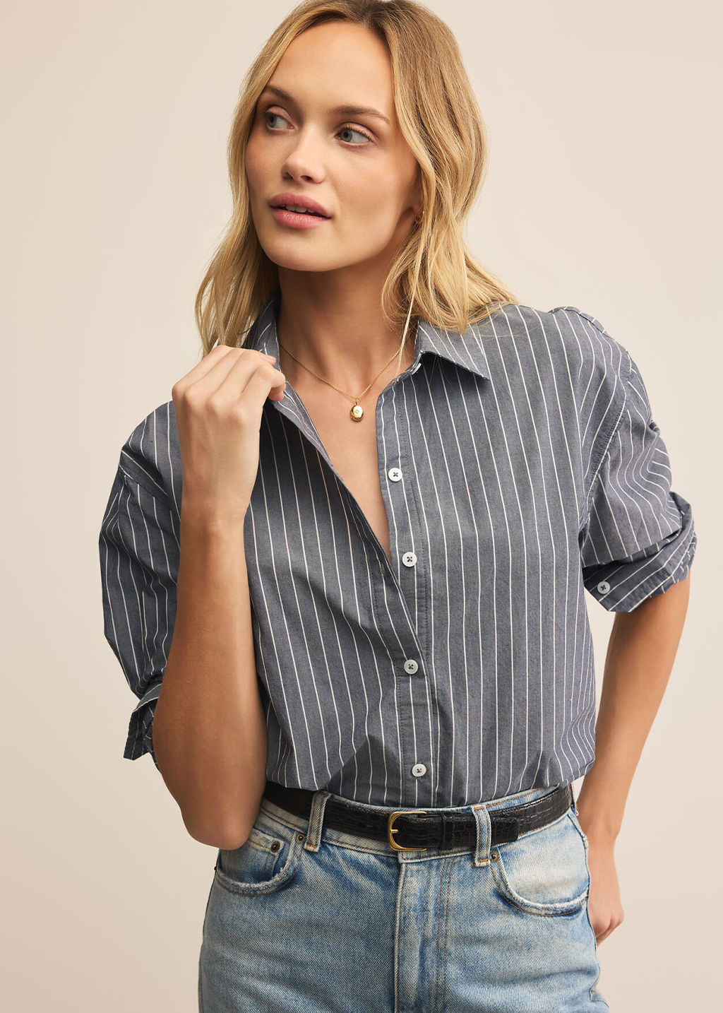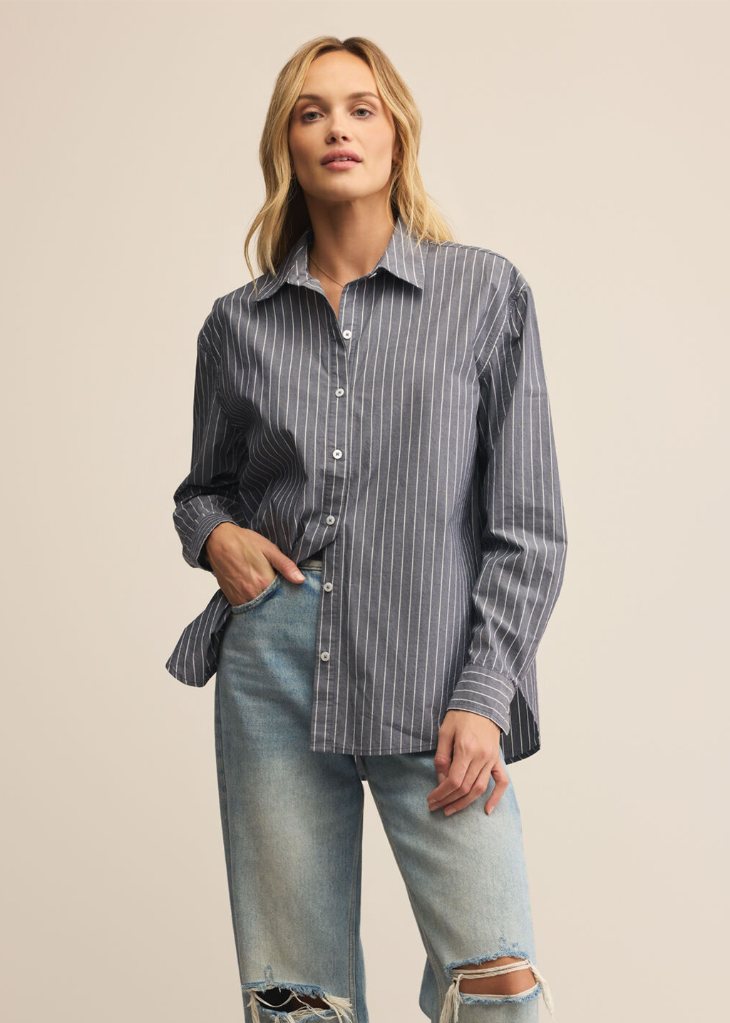 Classic and clean, this relaxed, stripe button-up is made from our new yarn-dyed cotton poplin with a crisp feel and lightweight design. It's a closet staple that balances polish and ease.