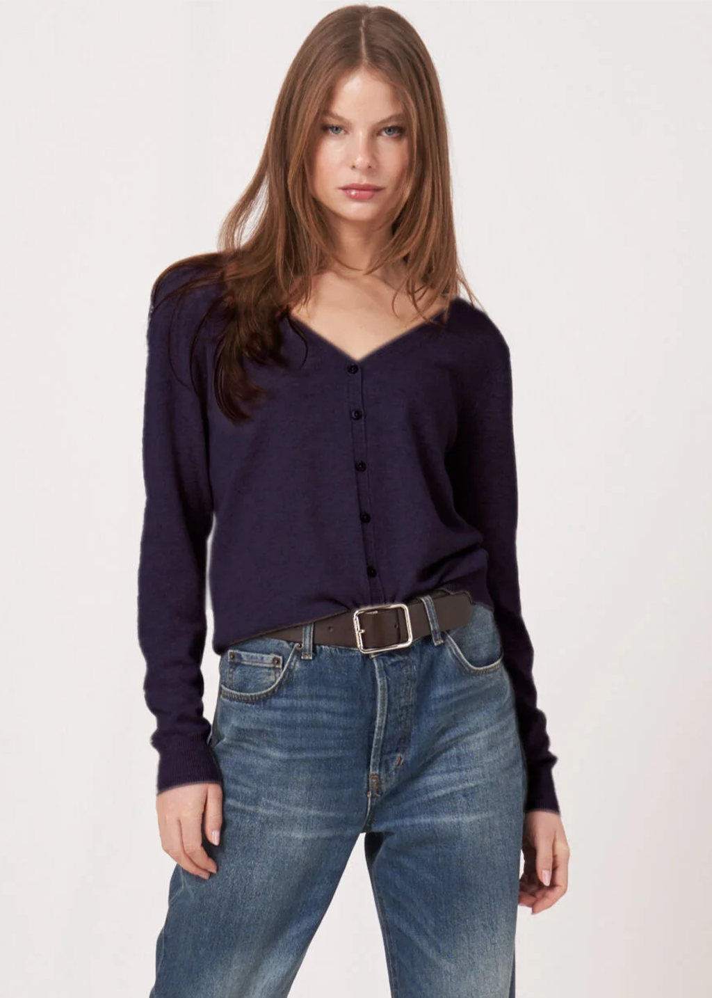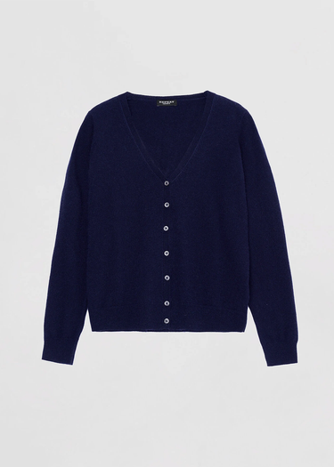 This finely knit cardigan is crafted from 100% organic cashmere, certified by GOTS for the highest standard in sustainability. Designed with a flattering V-neckline, ribbed edges, and a button placket, it balances timeless style with everyday comfort. The body-hugging fit and straight silhouette make it a versatile layer, whether worn on its own or over a favourite blouse. A conscious choice that brings softness, luxury, and ease to your wardrobe.