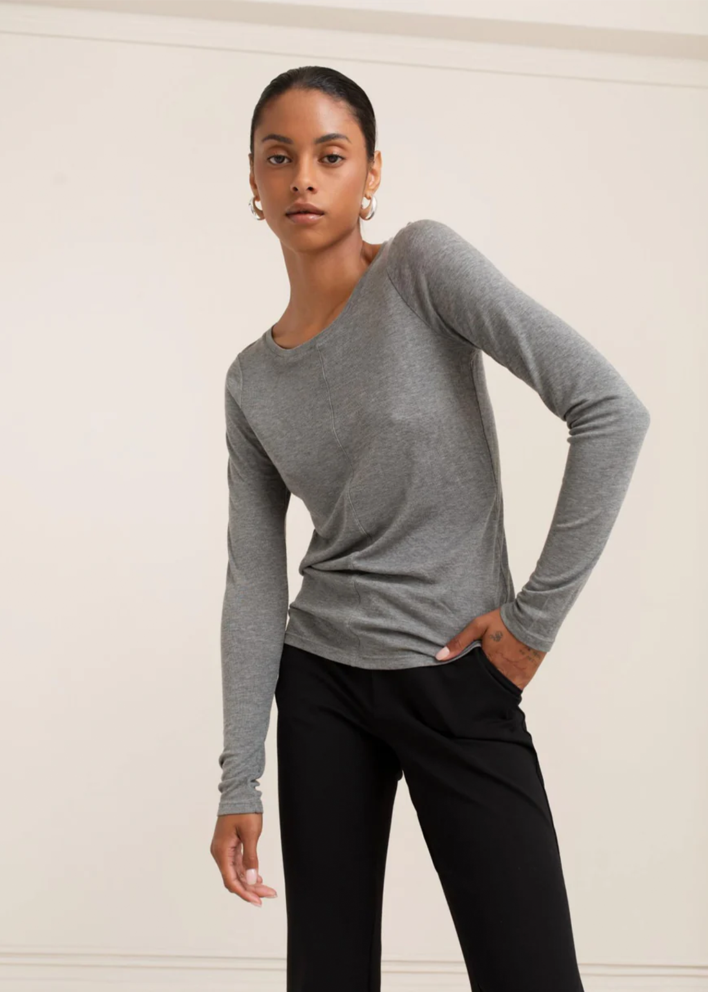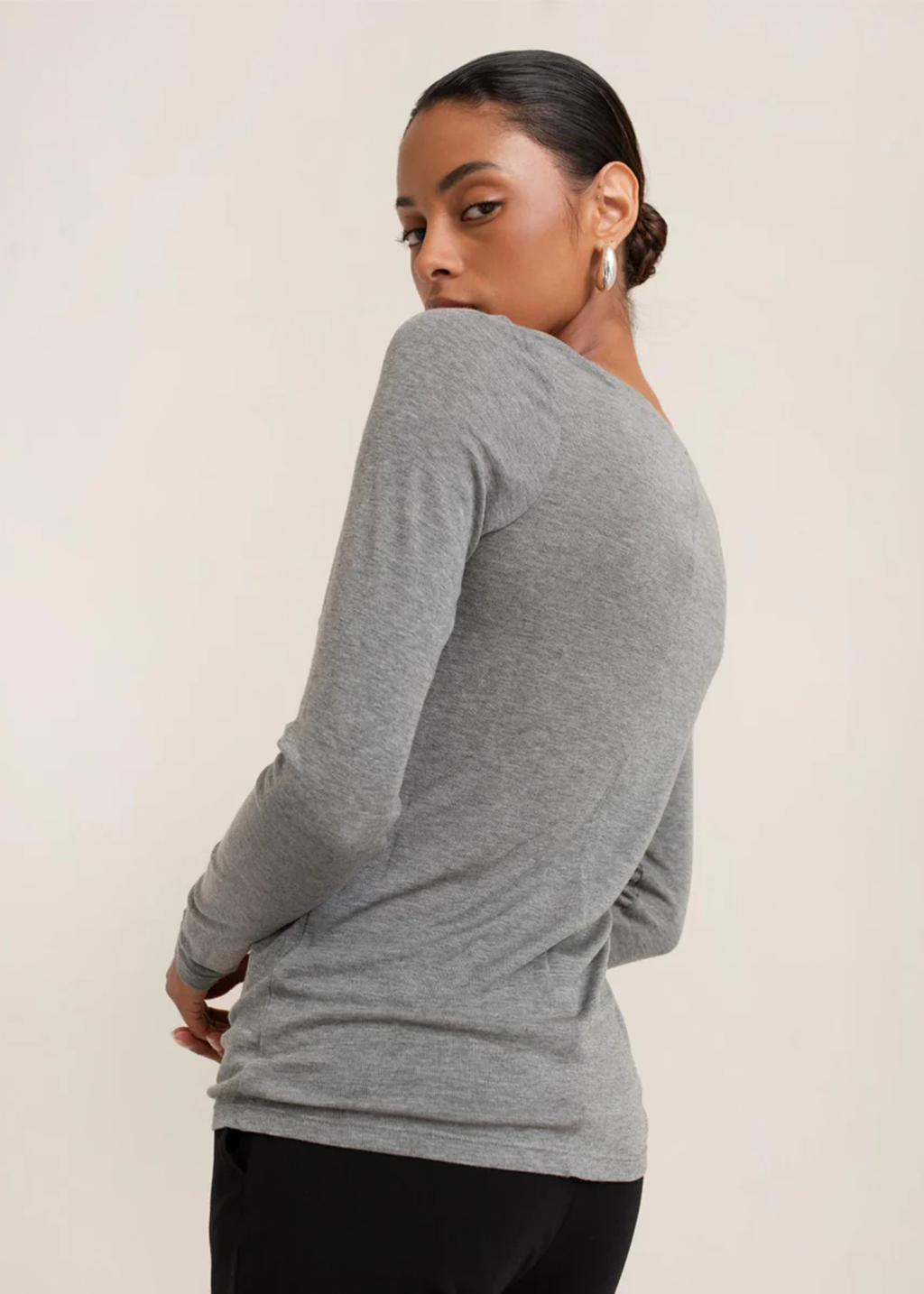 Everyday elevated. With long sleeves and a gently rounded neckline, the Zuri Long Sleeve is your go-to for soft layering. Crafted in a Lyocell and wool blend, it brings an airy, luxurious feel to everyday essentials.
