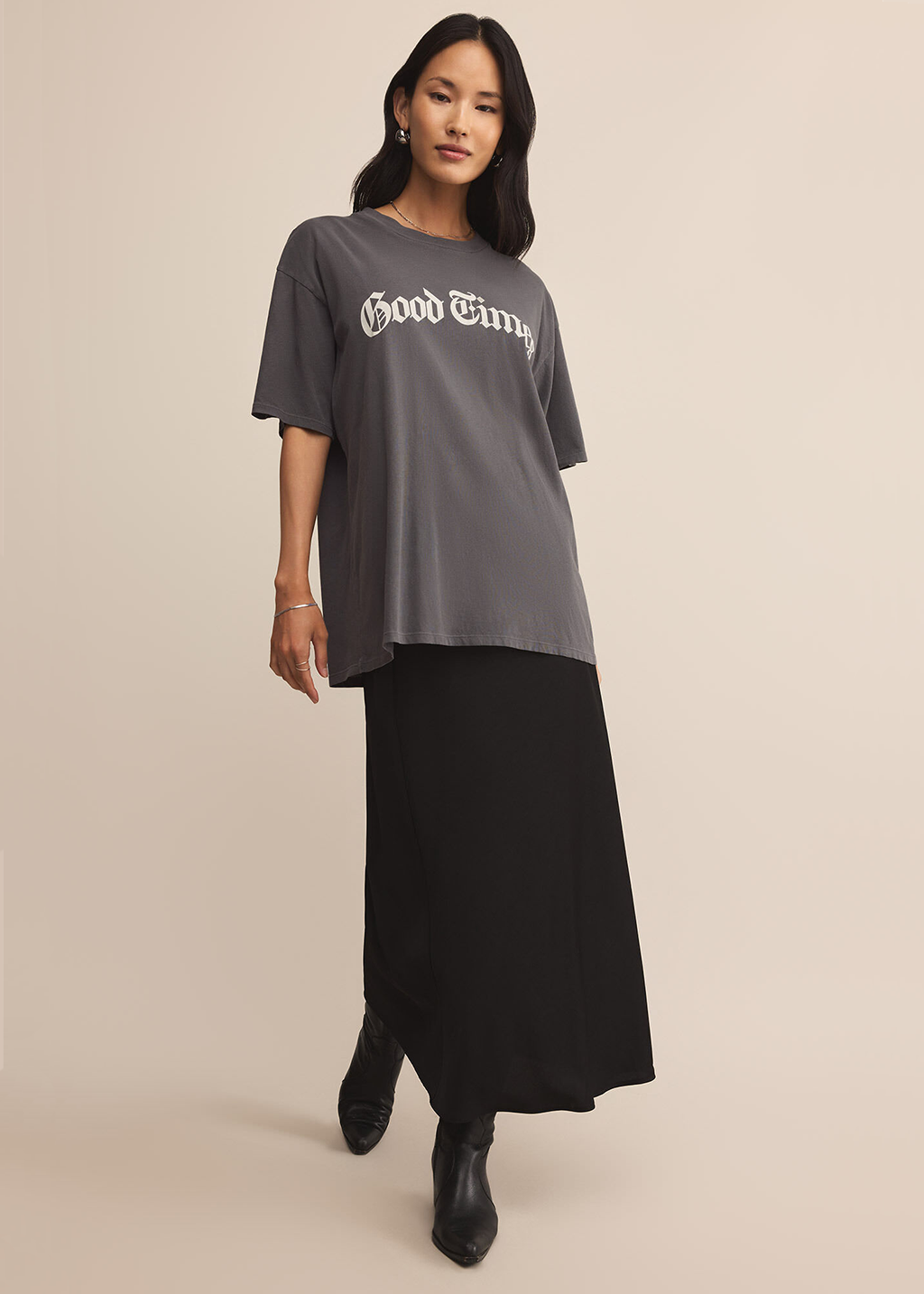 Sleek and polished, this high-rise maxi skirt is cut on the bias for a flattering, curve-hugging fit. The luxe satin fabric moves beautifully with every step, offering a refined look that works day to night.