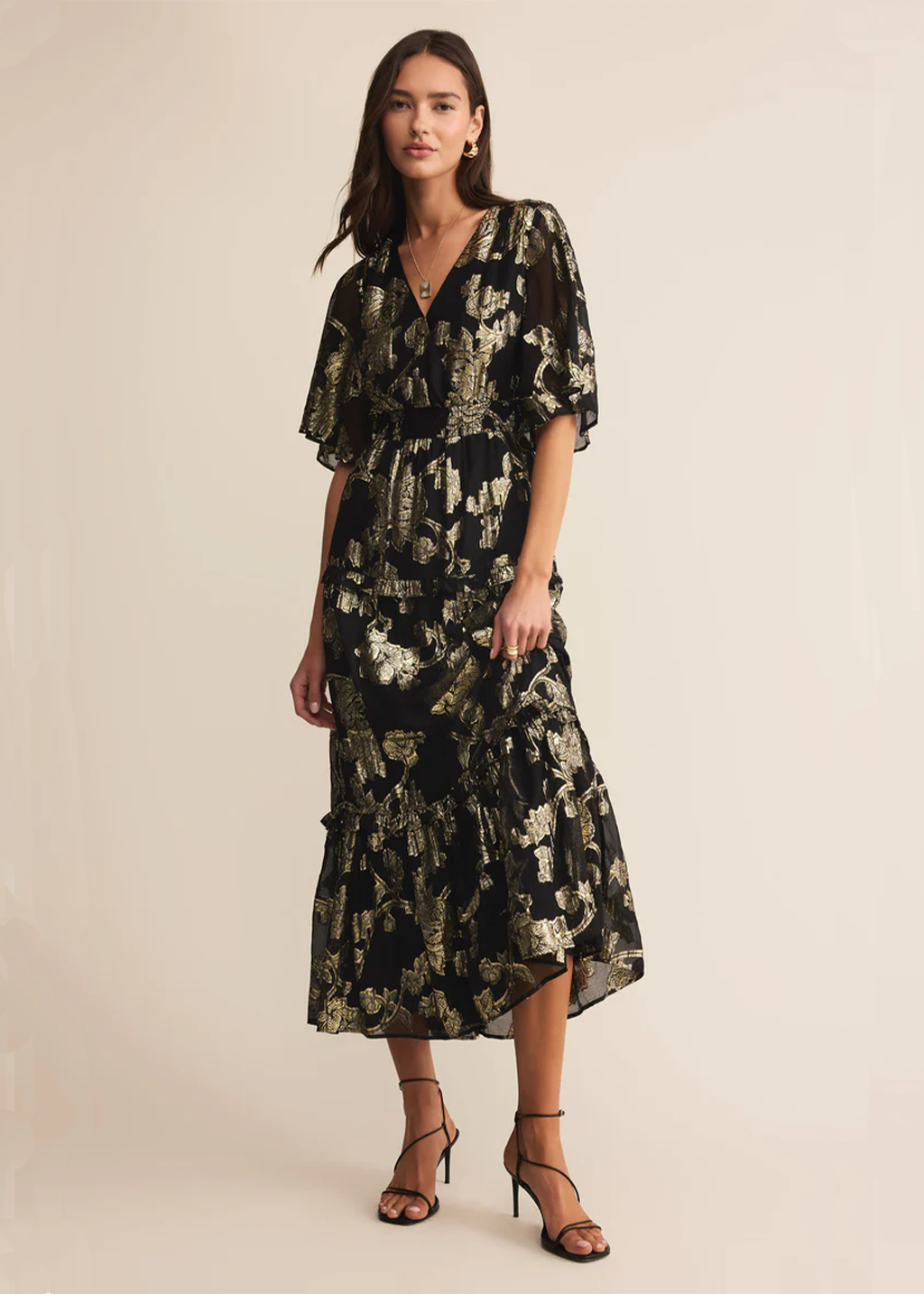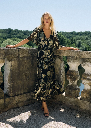 Crafted from jacquard, this maxi dress feels equal parts romantic and refined. The v-neckline and tiered skirt make it the perfect choice for any occasions that call for something memorable.
