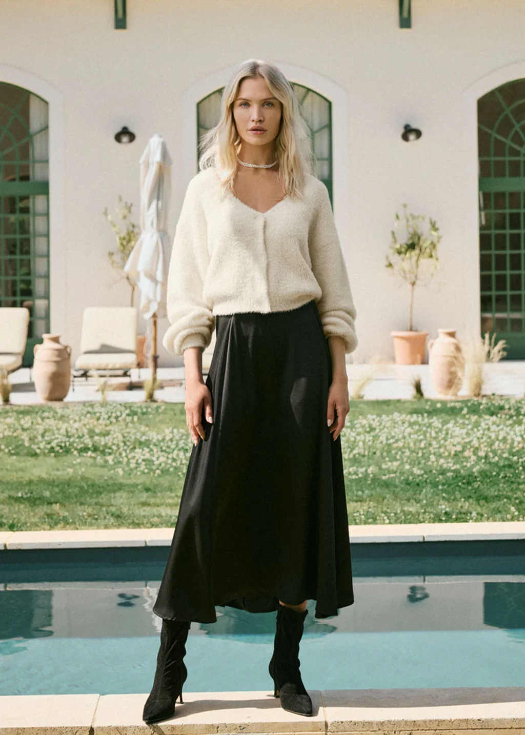 The high-rise fit and invisible zip closure keep the look clean and minimal, making it an easy piece to dress up or down for the season.