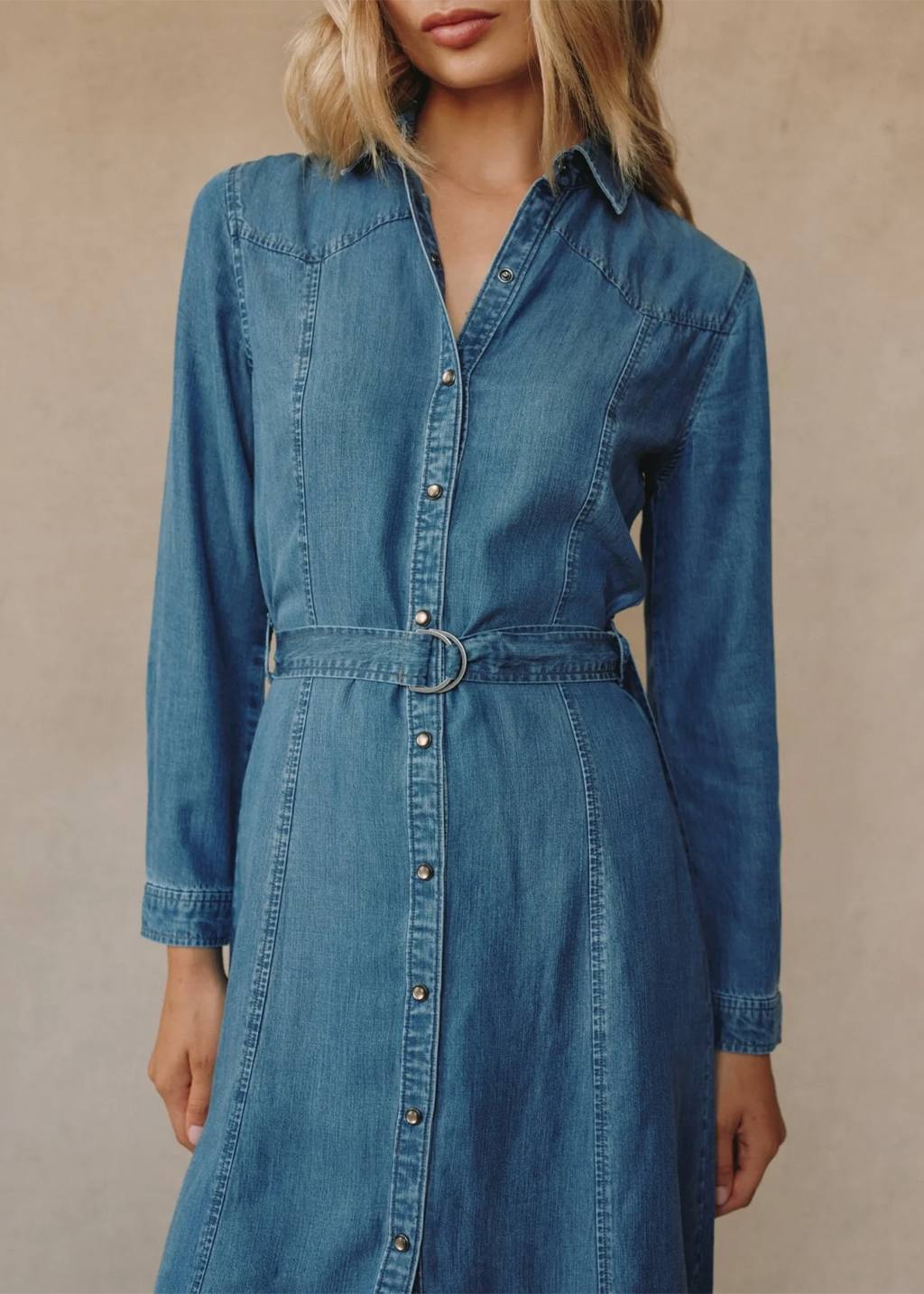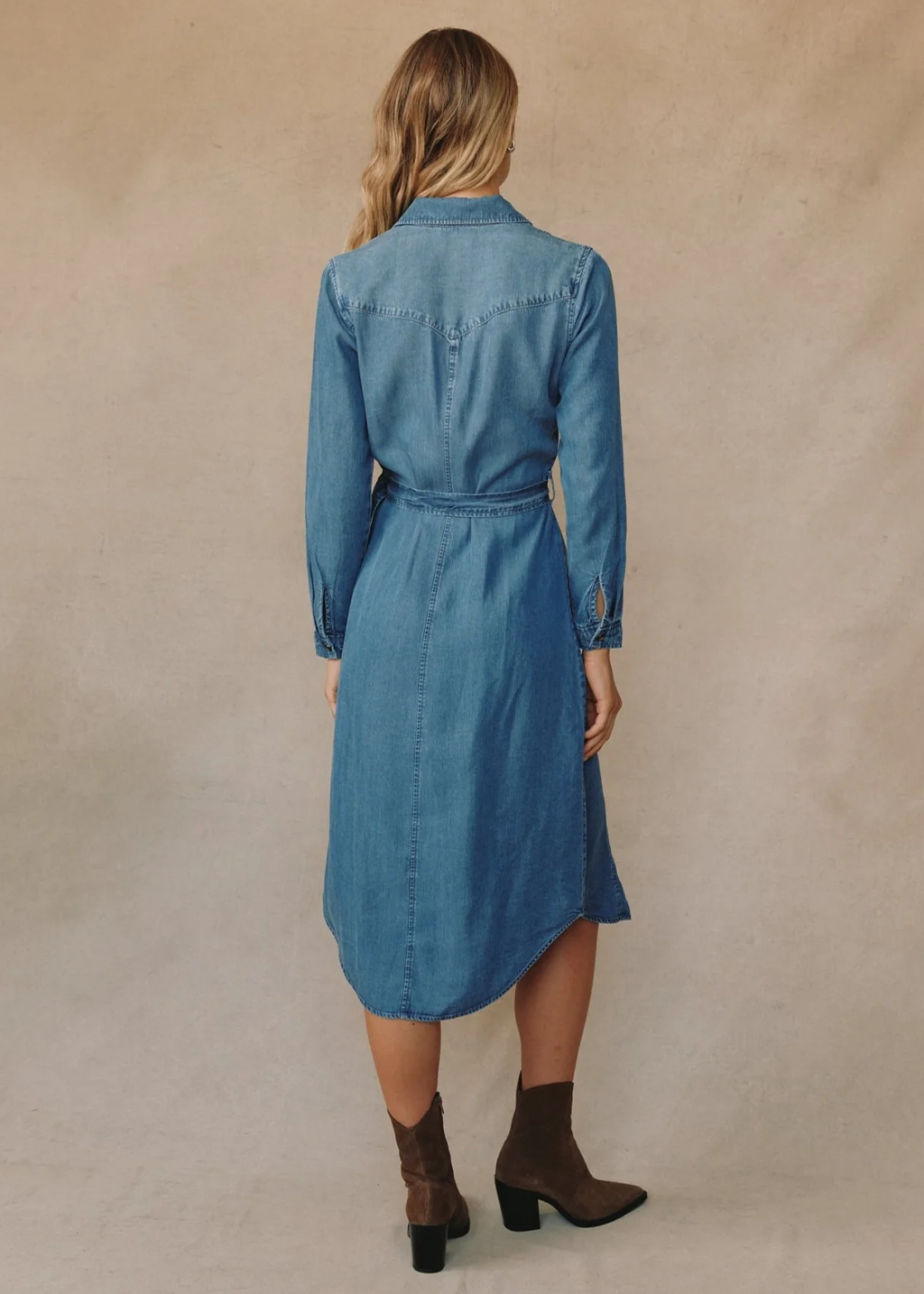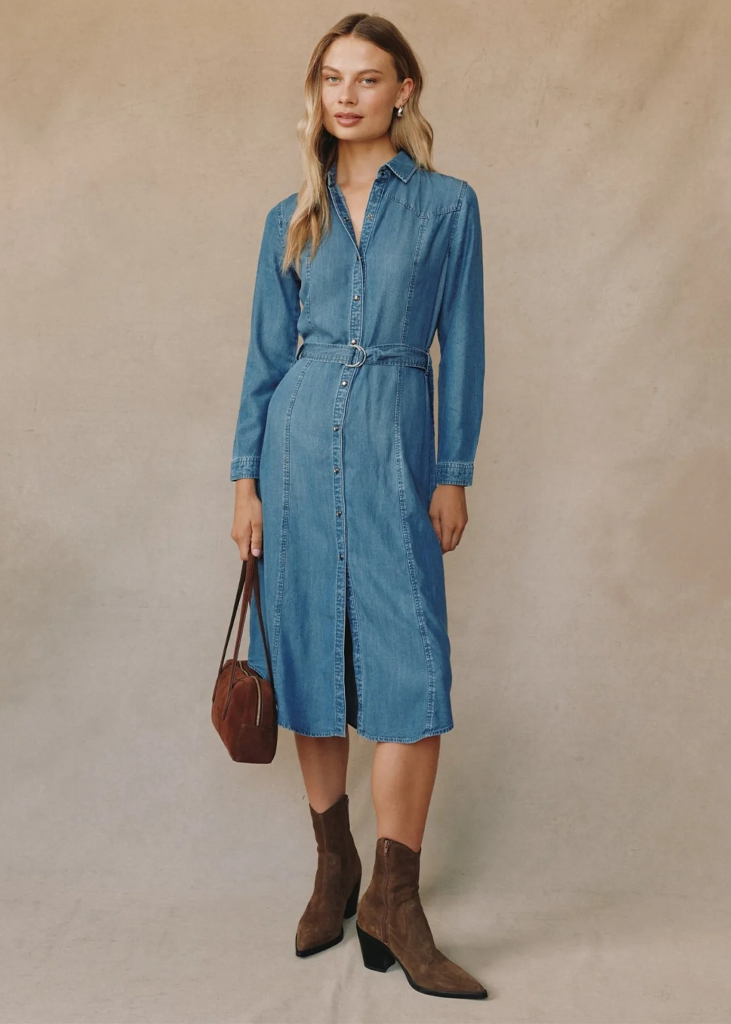The Western Yoke Midi Dress is a foundational silhouette designed with heritage-inspired detail and modern ease.