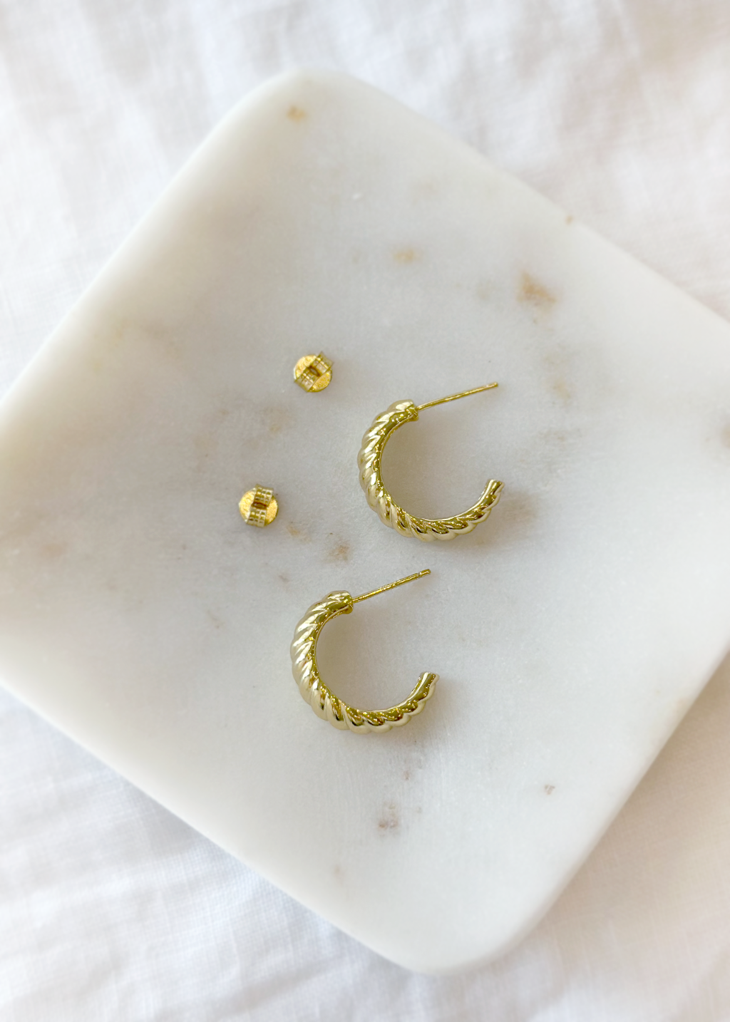 Make a bold statement with the Croissant Earrings. These chic gold hoops feature a croissant texture and are a stand out piece. Crafted in gold vermeil, these lightweight earrings are a perfect accessory to add texture to any outfit.