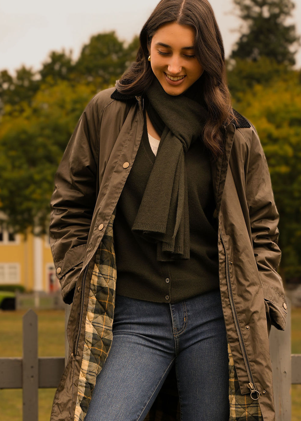 This finely knit cardigan is crafted from 100% organic cashmere, certified by GOTS for the highest standard in sustainability. Designed with a flattering V-neckline, ribbed edges, and a button placket, it balances timeless style with everyday comfort. The body-hugging fit and straight silhouette make it a versatile layer, whether worn on its own or over a favorite blouse. A conscious choice that brings softness, luxury, and ease to your wardrobe.