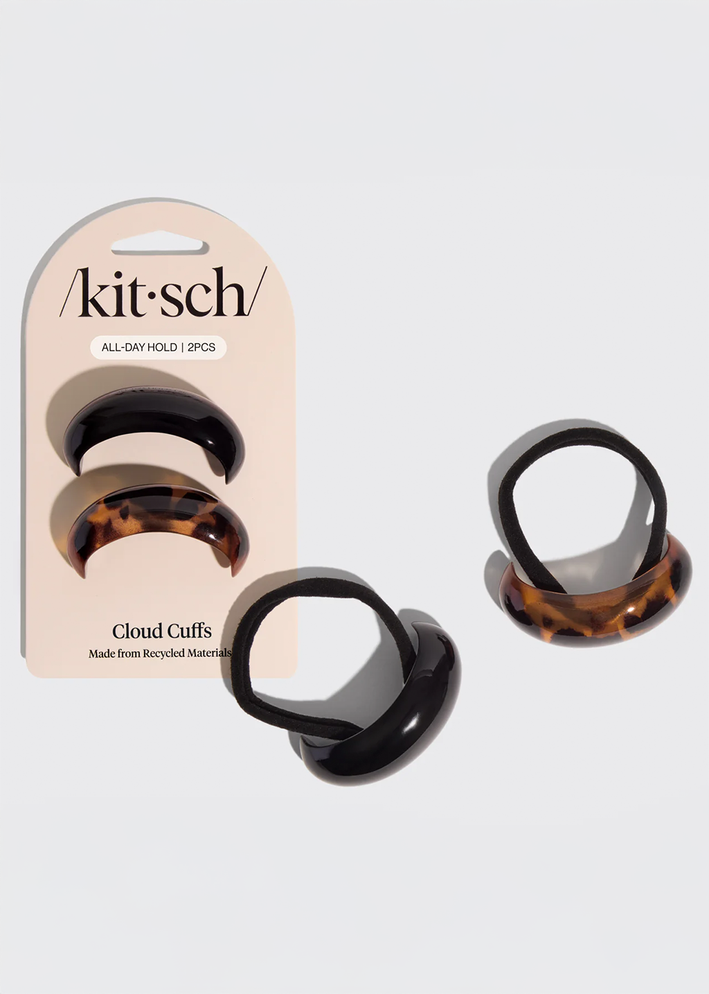 Elevate any look with the Kitsch Black & Tort Cloud Cuffs. A sleek and stylish hair accessory that turns everyday ponytails, braids, or buns into effortlessly polished statements. The modern black-and-tortoise shell design adds a refined finish, while the hidden elastic band ensures a secure, no-show hold all day. Made from recycled plastic, it’s both eco-conscious and durable, and its smooth construction delivers a comfortable, snag-free experience — whether for a casual day out or a more dressed-up occasion.