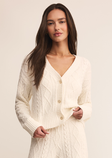 Wrap yourself in cloud-soft comfort with our Elsa Cable-Knit Cardigan & Pant Lounge Set. Crafted from plush light marshmallow yarn—an ultra-cozy, 100% polyester knit—this set feels airy, warm, and irresistibly touchable. The cardigan features a classic cable-knit pattern with a relaxed, draped silhouette you can layer effortlessly, while the matching pants offer a gentle stretch and a lounge-ready fit.