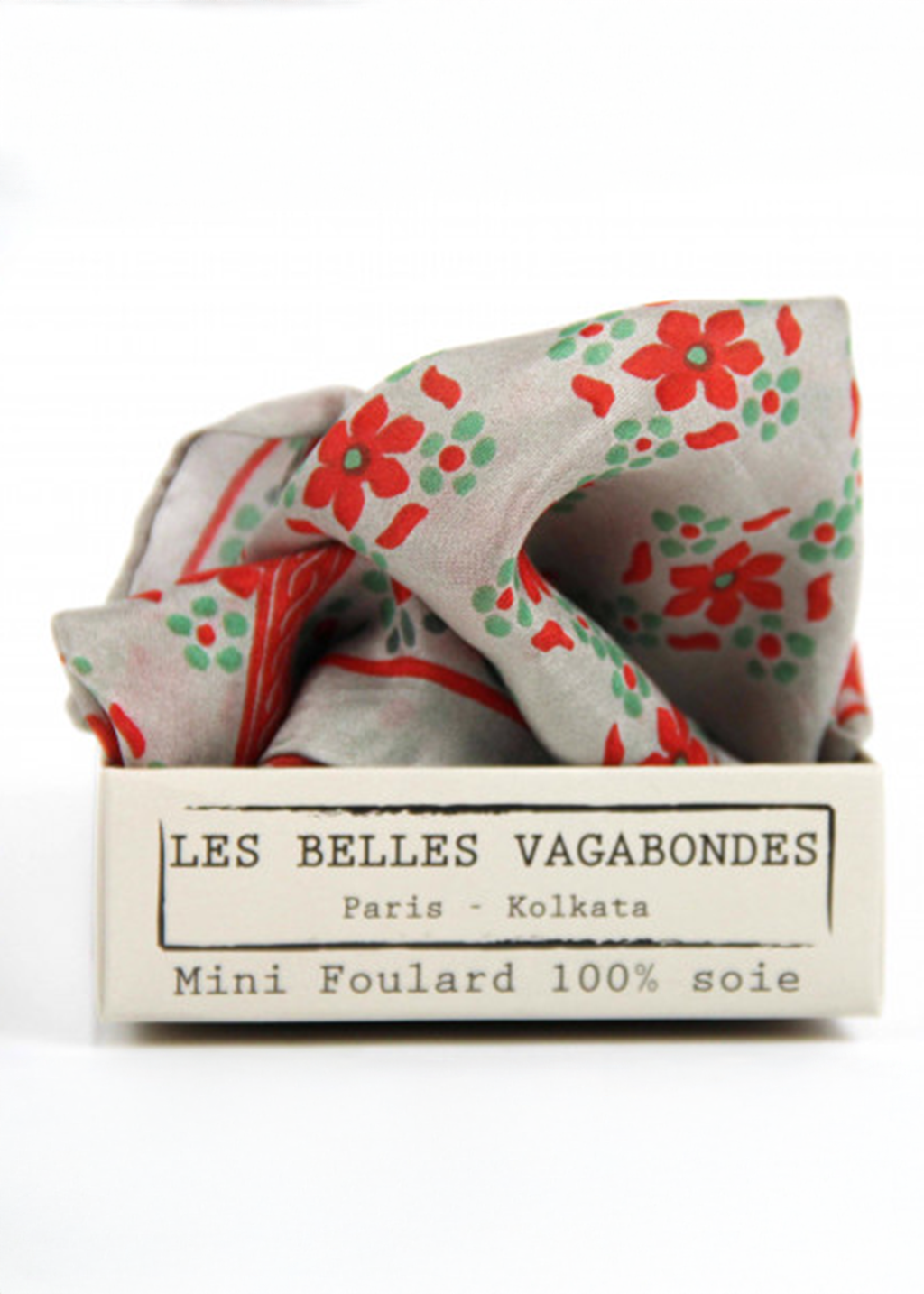 Mini scarves make a thoughtful, original gift—designed to be worn your way, whether tied at the neck, wrapped around a wrist, styled as a headband, woven into a bun, or knotted onto a bag. Each piece is hand-designed in France and hand-printed in India, finished with a delicate hand-rolled hem and presented in a vintage matchbox-inspired box. Crafted exclusively from natural fibers like silk, wool, and organic cotton, every detail reflects careful sourcing and exceptional quality.