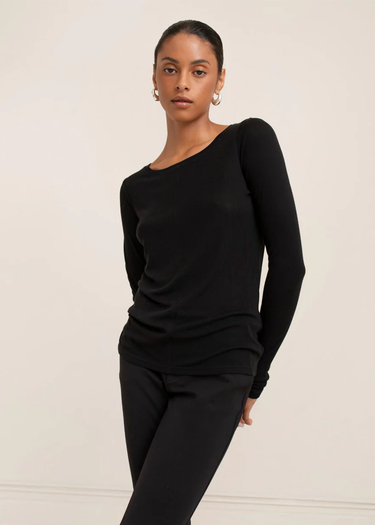 Everyday elevated. With long sleeves and a gently rounded neckline, the Zuri Long Sleeve is your go-to for soft layering. Crafted in a Lyocell and wool blend, it brings an airy, luxurious feel to everyday essentials.