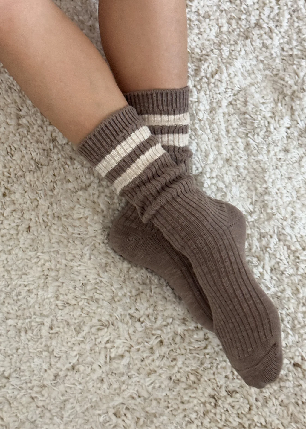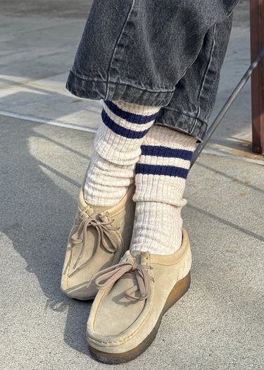 Everyone's favourite chunky knit sock, now with a modern athletic twist. The Cottage Varsity Socks are exactly what they sound like—rustic, cozy cotton blend socks featuring a signature varsity double contrast stripe. Style them slouchy with flats or pair them with your favourite sneakers for a laid-back look.