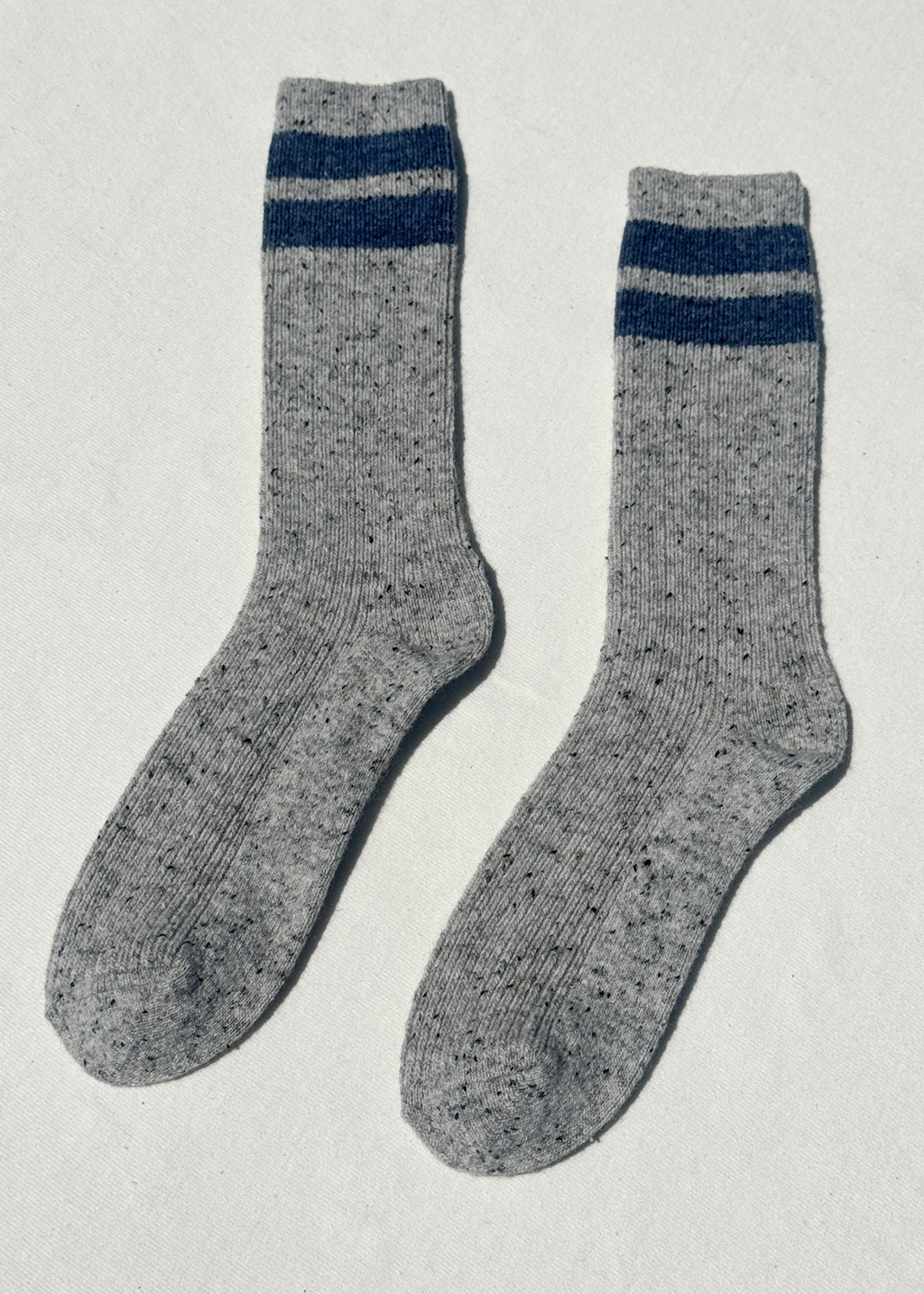 Made of a simple wool-blend, these socks are the perfect essential for cold weather. Snow Socks have a charming speckled look with calf length coverage. Double them for extra warmth while they carry your feet through the season with elegance. Pair them with anything from shearling booties to fisherman sandals in the fall.