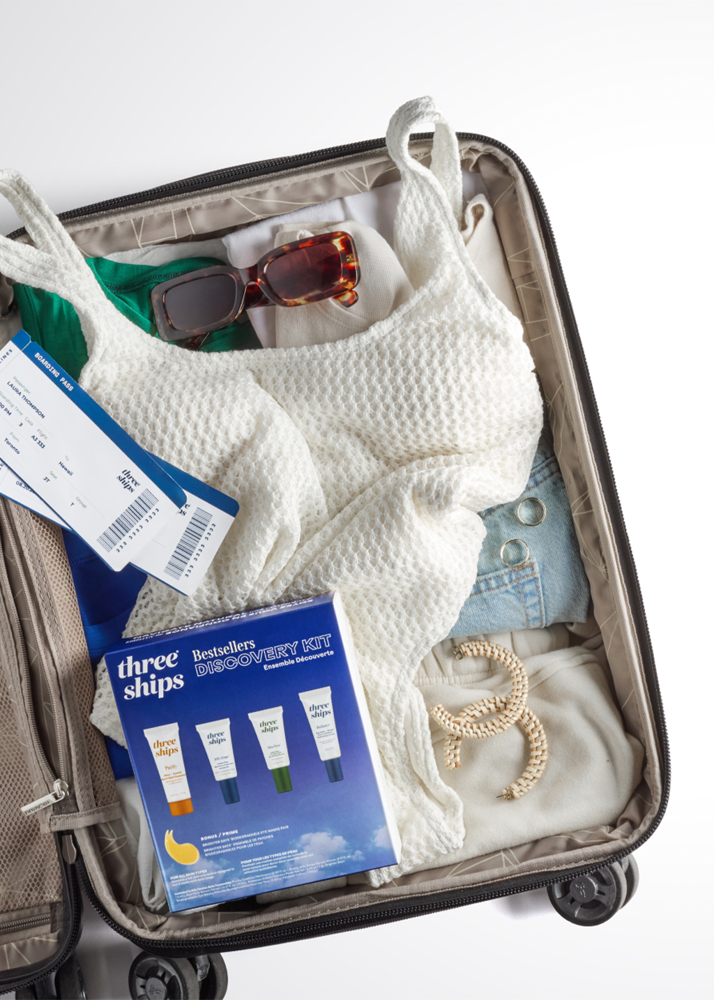 Everything you need for an all-natural, dermatologist-tested routine, now in the perfect on-the-go size. This best-sellers set includes our Purify Gel Cleanser, award-winning Jelly Drops Hyaluronic Acid Serum, SkinHero™ Bio-Retinol Serum, Radiance Ultra-Hydrating Moisturizer, and a bonus pair of Brighter Days Biodegradable Eye Masks. Ideal for travel or trying something new, each formula is backed by clinically tested, naturally derived ingredients for real results.