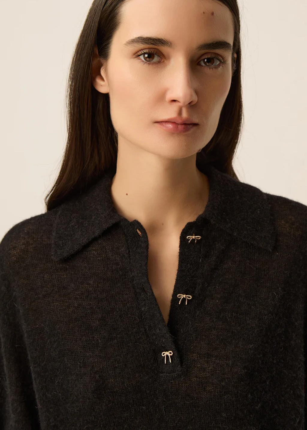 Combining modern style with sportswear heritage, the Cowboy polo sweater offers a glimpse of the must-haves for your spring wardrobe. Made from incredibly soft alpaca and merino wool, its gold bow buttons elevate its style.