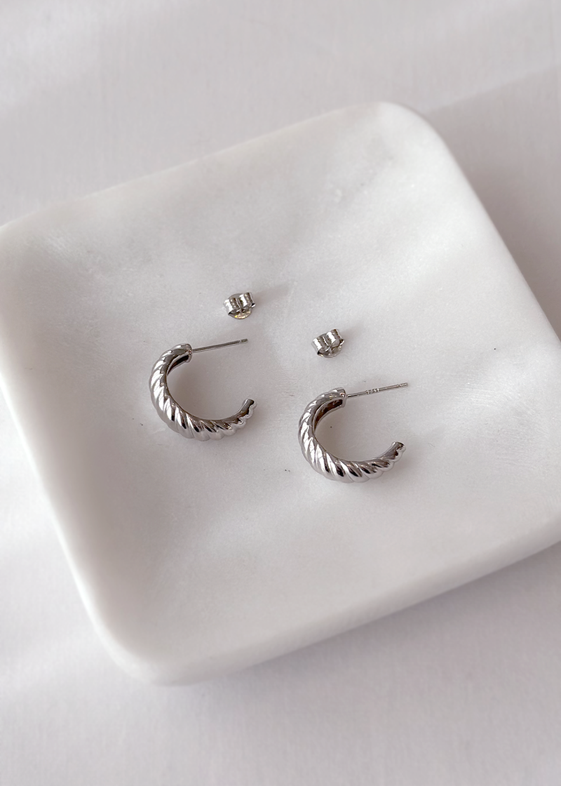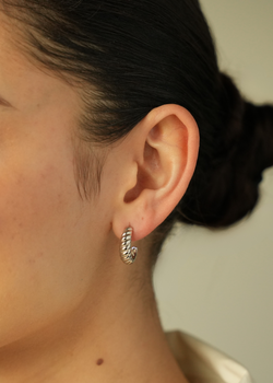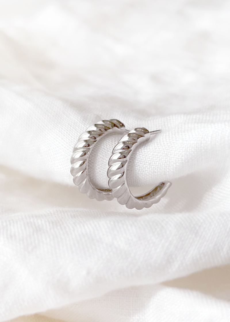 Make a bold statement with the Croissant Earrings. These chic silver hoops feature a croissant texture and are a stand out piece. Crafted in sterling silver, these lightweight earrings are a perfect accessory to add texture to any outfit.