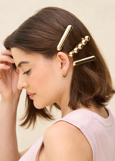 This set brings effortless polish to any hairstyle — the sleek metallic finish adds a subtle sparkle that instantly elevates your look while keeping your hair securely in place. Designed for versatility, these sturdy barrettes work beautifully on short, medium, or long hair, making them a practical, stylish buy for both everyday wear and special occasions.