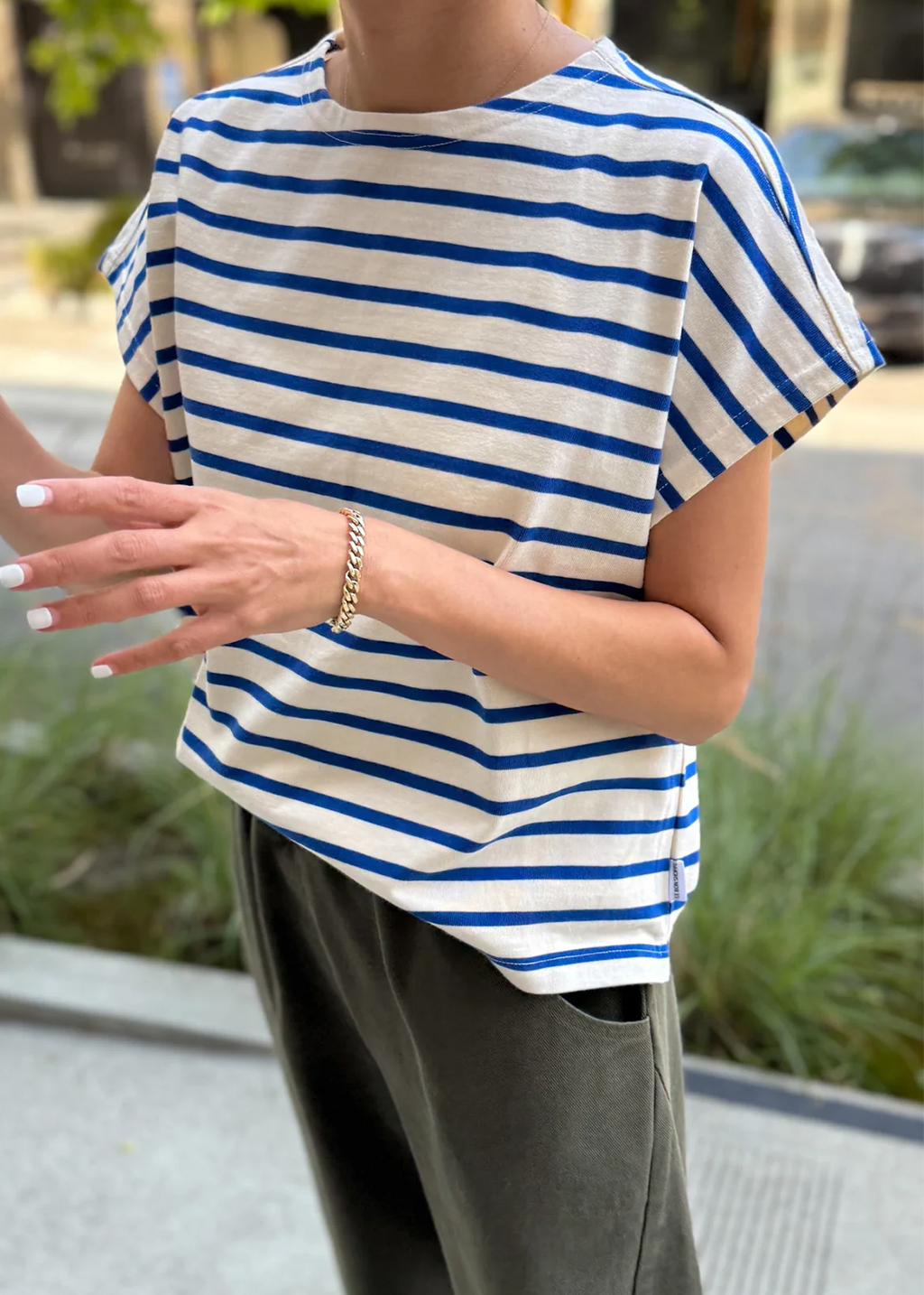 A shorter take on a classic. The Manon Tee channels the same effortless charm as the Marseille Top, reimagined with a cap sleeve and cropped length. Made from the same substantial heavyweight cotton, it holds its boxy shape while feeling soft against the skin. Finished with Parisian-inspired stripes, it’s an easygoing essential with timeless appeal.