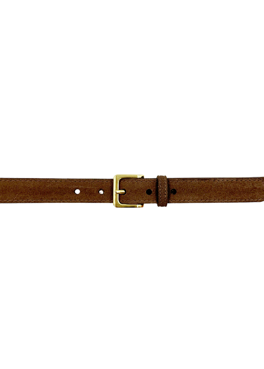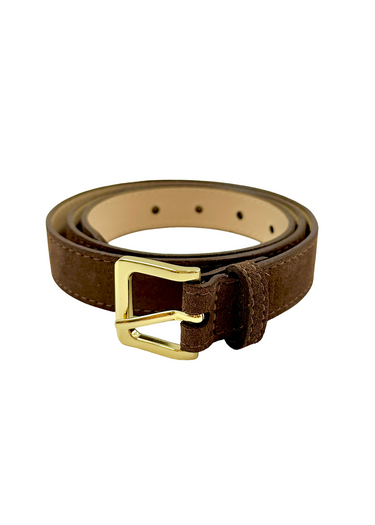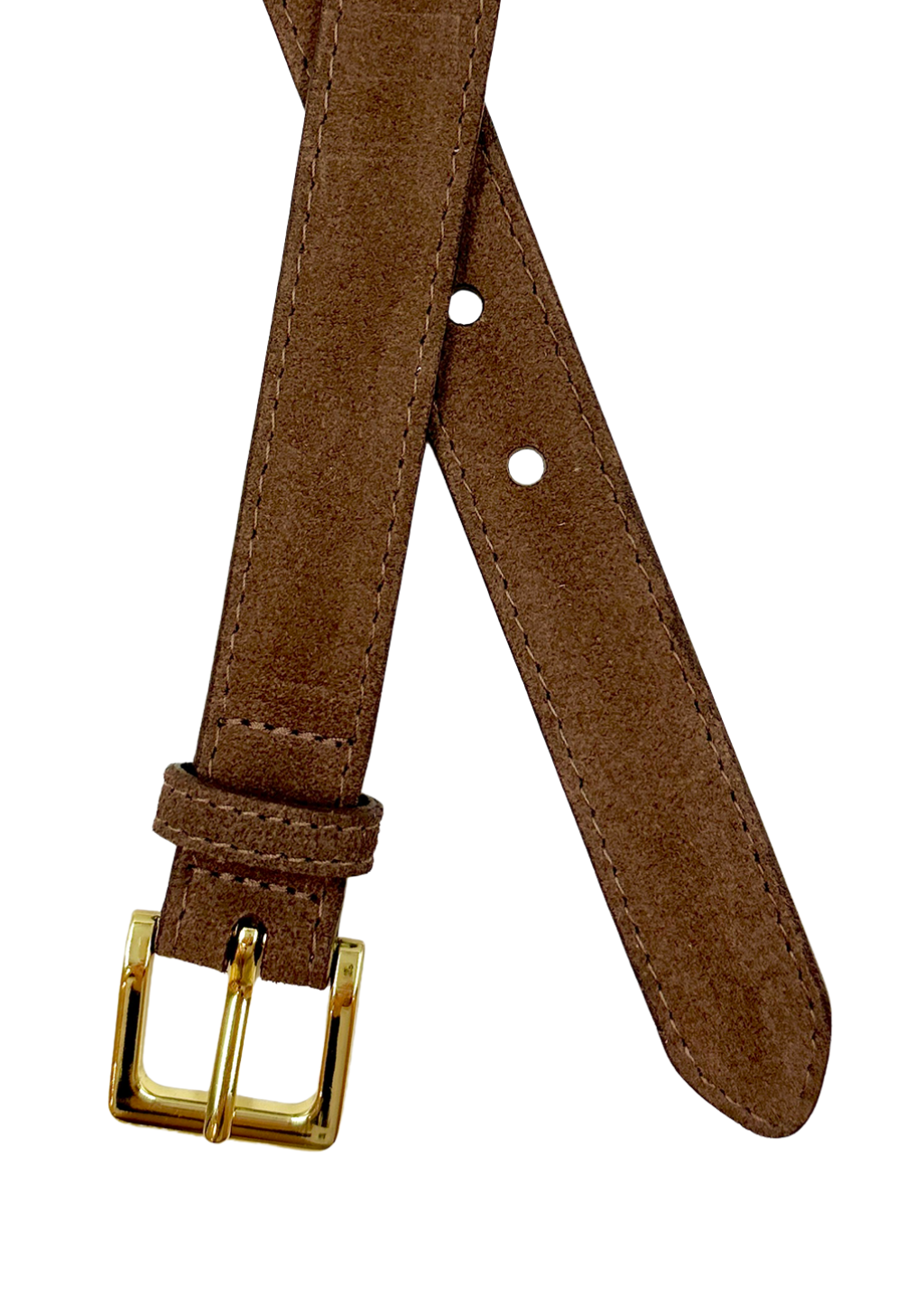 Millie is a great belt to draw attention to the waist. A high polished buckles secures a soft suede strap. This best selling style is a timeless wardrobe staple.