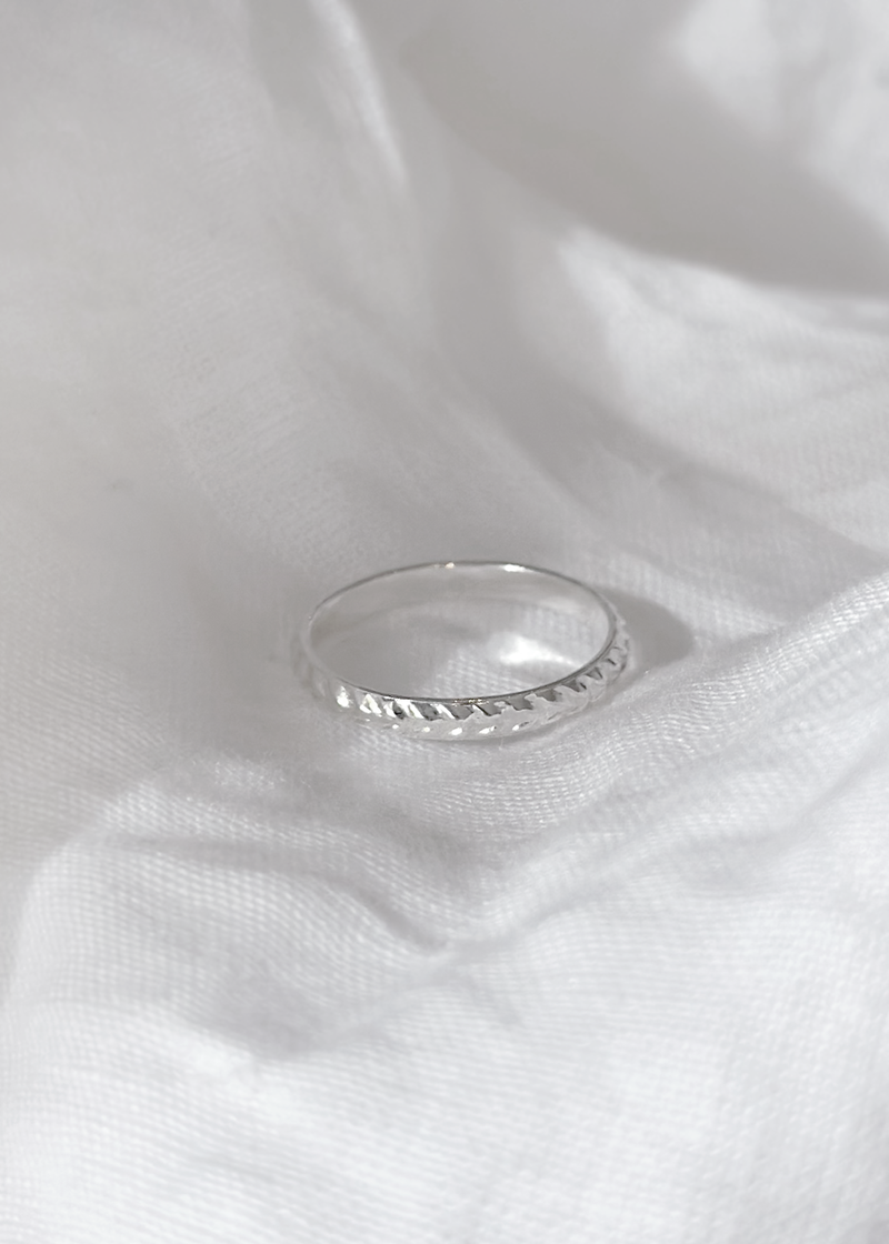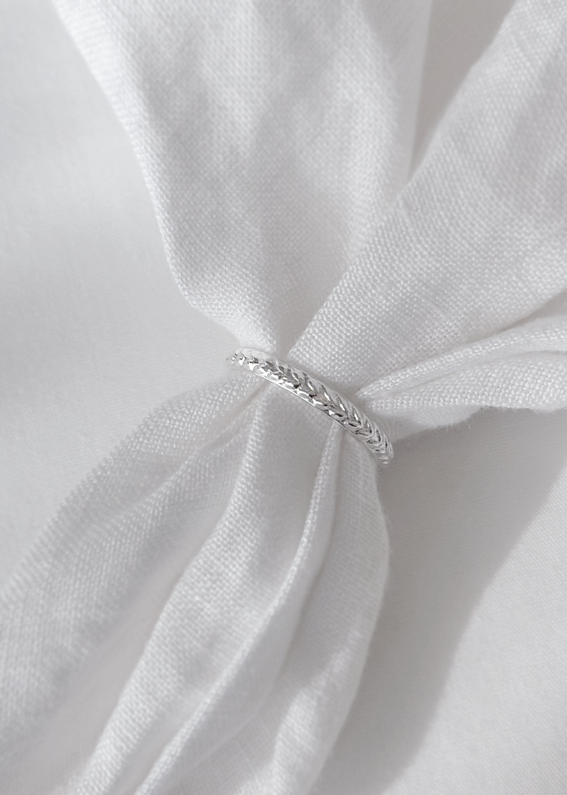 This beautiful Palm Ring features a subtle leaf texture detail along the medium band, making it the perfect stackable accessory. Add a touch of luxury to your look with this timeless and elegant design.