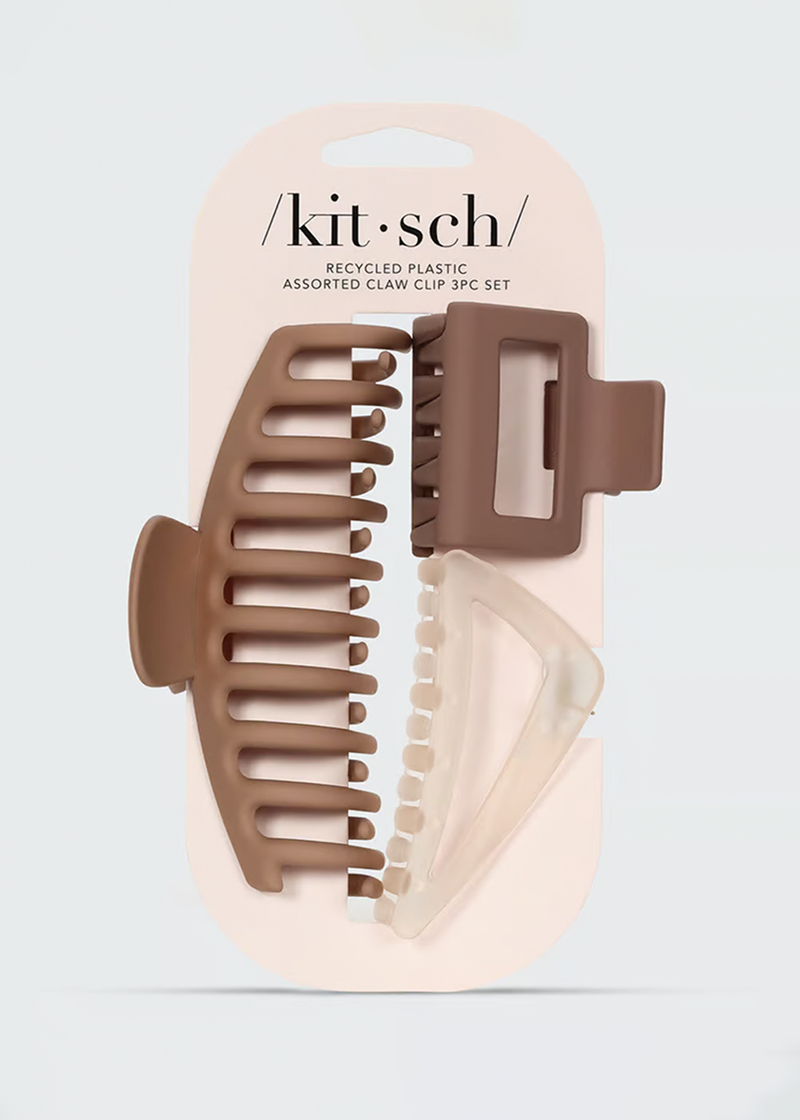 This recycled plastic assorted claw clip set features a trio of must-have claw clips in a variety of shapes and sizes that let you set your style and elevate your look with ease.