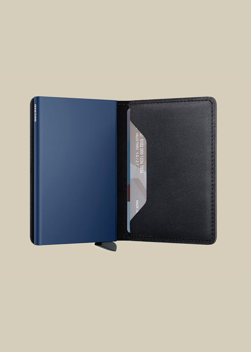 The Slimwallet is a modern take on the classic billfold. With its slim profile, it fits perfectly into every pocket. The open exterior is designed to accommodate cards, banknotes and receipts. The Cardprotector mechanism enables you to slide out cards with a simple motion, while the aluminium construction protects your cards from bending, breaking and unwanted wireless communication.